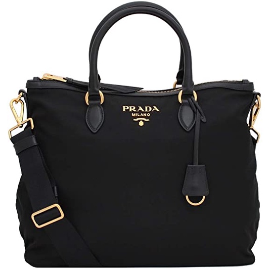 Prada Womens Two Way Black Tessuto Nylon Tote Crossbody Calf Leather Trim 1bc060 Shopee Singapore
